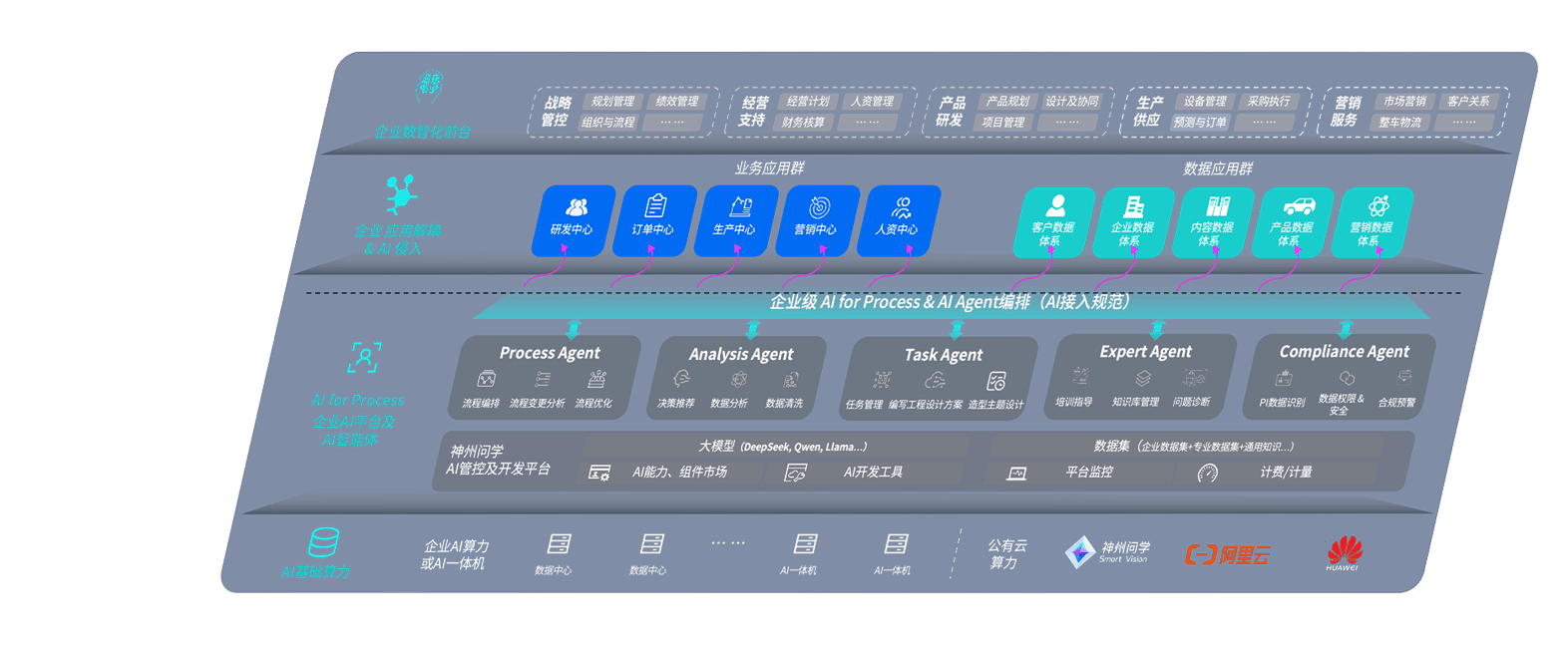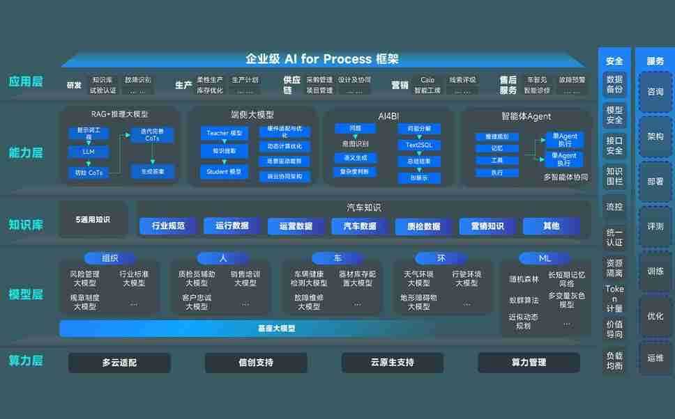 端到端的一站式AI工作空间深度融合了从企业战略规划到日常经营的全流程业务板块,,,定向解决车企内部领域多、、、、部门多、、、链条长、、场景碎片化等难题,,,,支持车企快速构建以AI为核心的生产力写作体系,,,实现任务执行与AI能力的无缝集成与交互